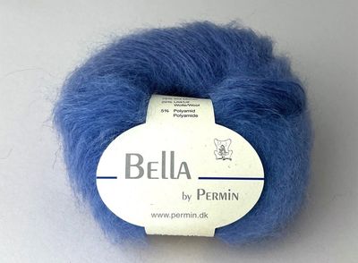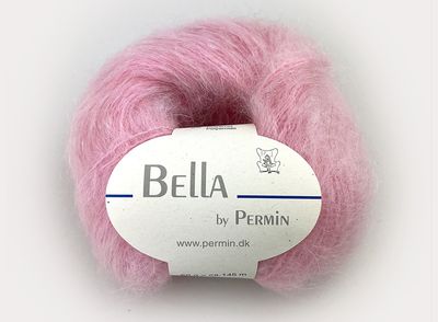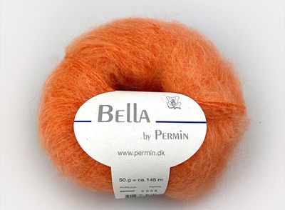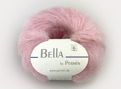 Bella fra Permin, 75% mohair, 20%ull, 5%polyamide, 50 g = 145 m. Gelato fra Lana Grossa, 52%